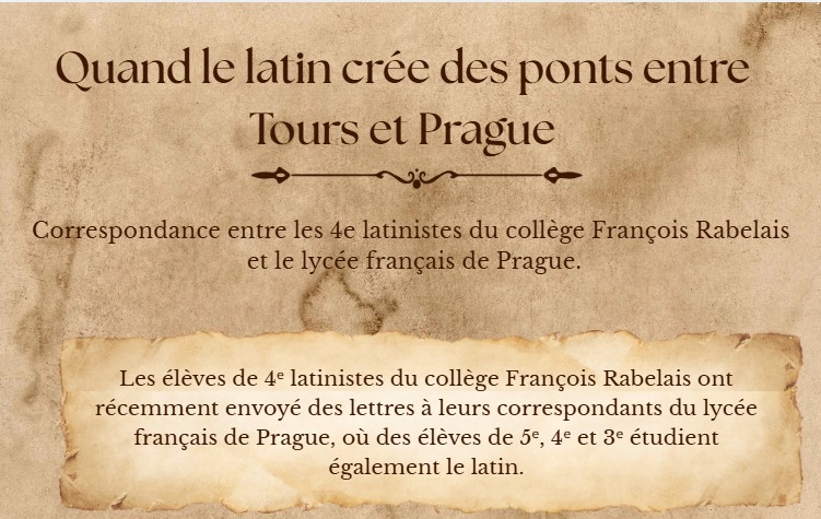 Projet en LCA 4e – Un échange épistolaire en latin entre notre collège et le lycée français de Prague